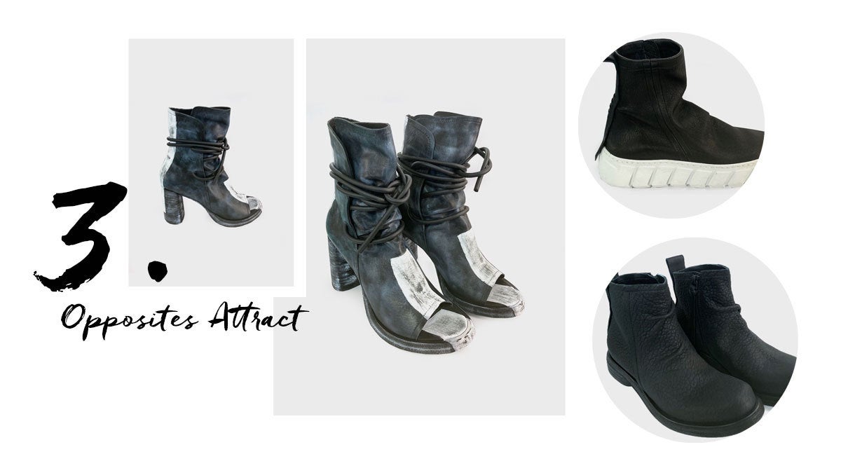 Left to right: Body and Soul Heel, On The Edge Sneaker, Short Cut Boot.