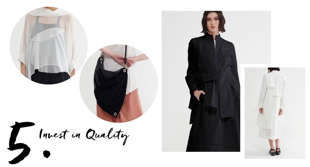 Invest in Quality: Invest in pieces that will last the test of time and help make your wardrobe look classic, polished and worn multiple times over. For example, a white shirt like the Circle Inflate Top, a statement trench such as the amazing Refined Reverberate Coat, a bold blazer, ankle boots, a black handbag like the stunning Large Rotate Bag and a quality black slip dress. It’s important to remember, if you buy and look after your clothes you can shop your own wardrobe and discover things from years ago that are a take on what is trending now. Click here to explore our new styles now!