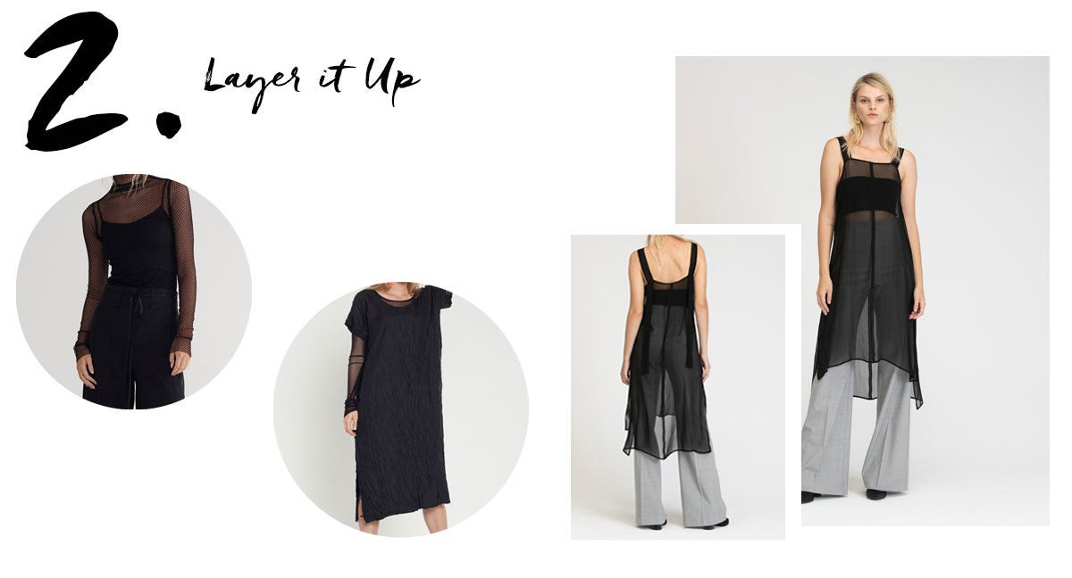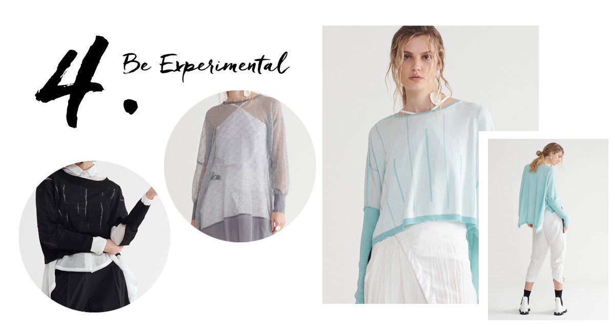 Be Experimental: Pull out your favourite pieces from winter and summer to combine them together. Layer light with midweight layers such as the incredible Reversible Shadow Sweater or the Sheer Objective Dress with summer shorts or a floating skirt, or your favourite winter pants with a beautiful summer singlet tucked in with a belt. The Trace Sweater is also the perfect crop knitwear piece to layer over a longer dress shirt and tailored pants for a easy winter through spring look. Click here to shop our new collection now.