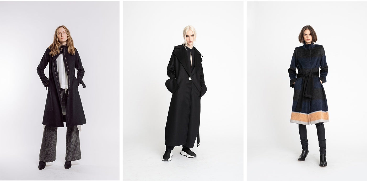 Left to right: Refined Reflection Coat, Originate Coat, Stripe Reflection Coat