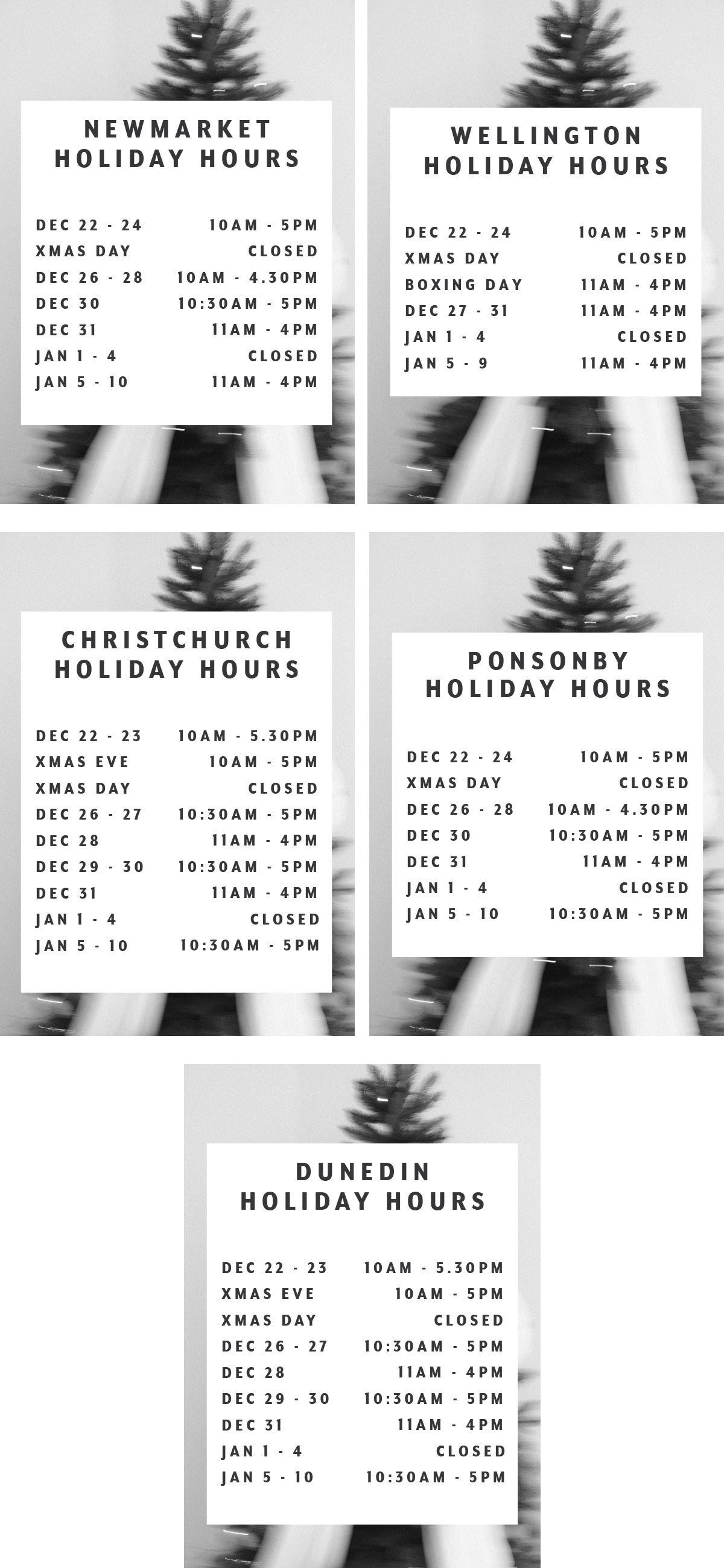 Come see us this festive season! Make the most of your time off these summer holidays, and come have a look at your favourite taylor store to find some special pieces for yourself! Our stores are open their normal hours you can see here apart from the dates listed below.
