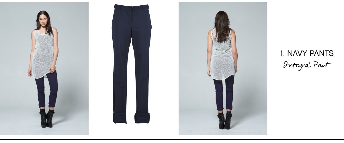 - NAVY PANTS - Step away from black and invest in the Ink Integral Pant. Navy and Ink are the perfect break from black, while still providing a slim and classic look. Don’t be afraid to pair them with black, white, cream and even colour to really mix it up. If you’re struggling with what colours to pair them with, think of them as denim to help you to combine and create more options. And remember - their structure and dark navy hue will instantly make your look more formal than jeans.