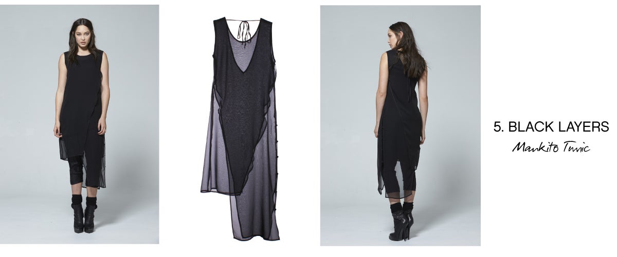 - BLACK LAYERING PIECES – For an easy fashionable look, try our black Mankito Tunic which can be combined and layered with longer and shorter tops. These pieces are great at lending themselves to the illusion of an intricate outfit, with the mixture of different textures, opacities and lengths. Plus, you can even wear it by itself with a black slip and summer sandals on a hot day.
