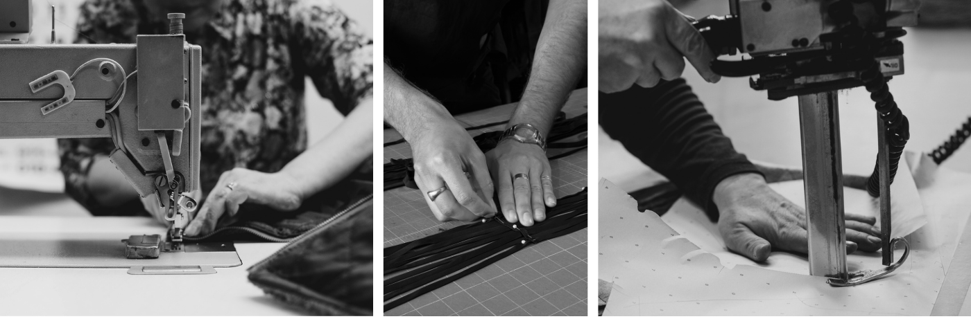 Once the garments are approved by design, our Production Manager takes charge. Our "Five Hands" manufacturing is a reflection of the multiple skilled makers who contribute to a single garment. The pattern maker, cutter, machinist, finisher and presser each play a role, bringing care to every stage.