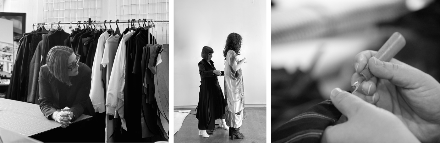 Once the collection begins to take shape, each design is translated into a pattern. Working with a trusted pattern marker, who has become like family, Vicki and the design team work through the construction of each garment and how to translate complex sketches into wearable garments.