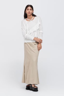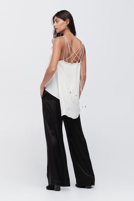 Introducing Tensegrity, Spring / Summer 24. Drawing inspiration from contemporary artist Kenneth Snelson and his innovative works drawing from the principle of floating compression. Coined 'Tensegrity', solid elements are suspended in space, held together by tension strings.