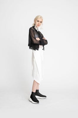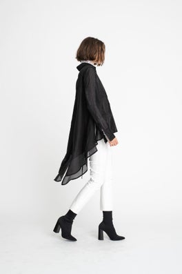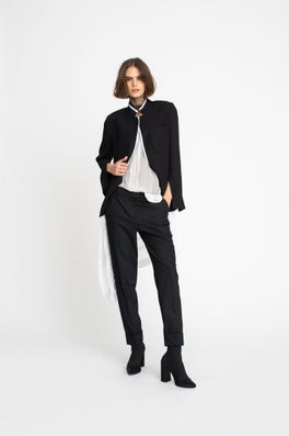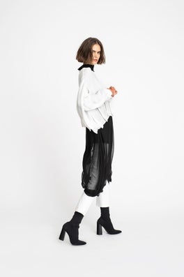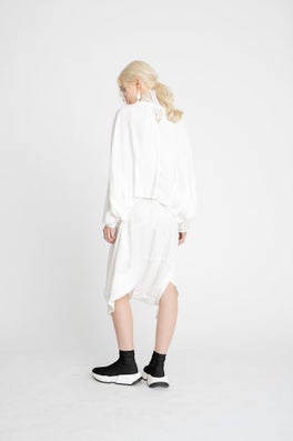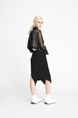 Inspired by the relationship of misaligned objects and how they interact with other forms, our taylor Autumn Winter 19 collection 'Kilter’ is designed to transition you through the seasons and into the cooler winter months with ease. With inspiration taken from artists such as Jan Van Munster and Anthony McCall, the collection plays strongly with shape and texture. Graphic architectural lines are slightly offset and cut into flowing silk fabrications while discreet darting creates unexpected